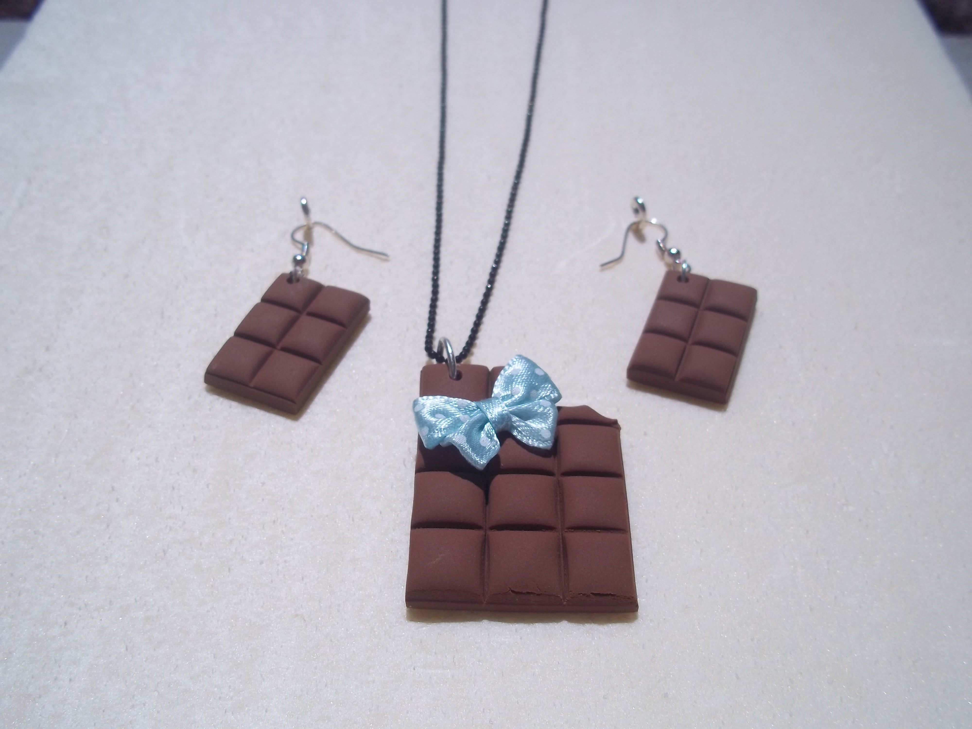 voilà les bijoux choco enfin terminé, apres avoir choisi la deco, fait quelques trous ici et là et apres avoir choisi la chaine, voici 3 parures en vente sur ma boutique ce soir ;)