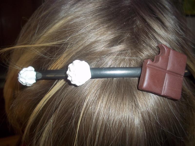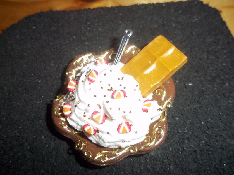 alors il y a dans le desordre : une bague biscuit croqué/chantilly(commande) une bague tarte aux fraises(que m'a dejà adopté ma fille), un pendentif macaron chocolat/chantilly, un pendentif assiette chantilly+gaufrette avec fraise et petite cuillere, un pendentif carré de chocolat/chantilly,un serre tête gourmandise et un essai de camée