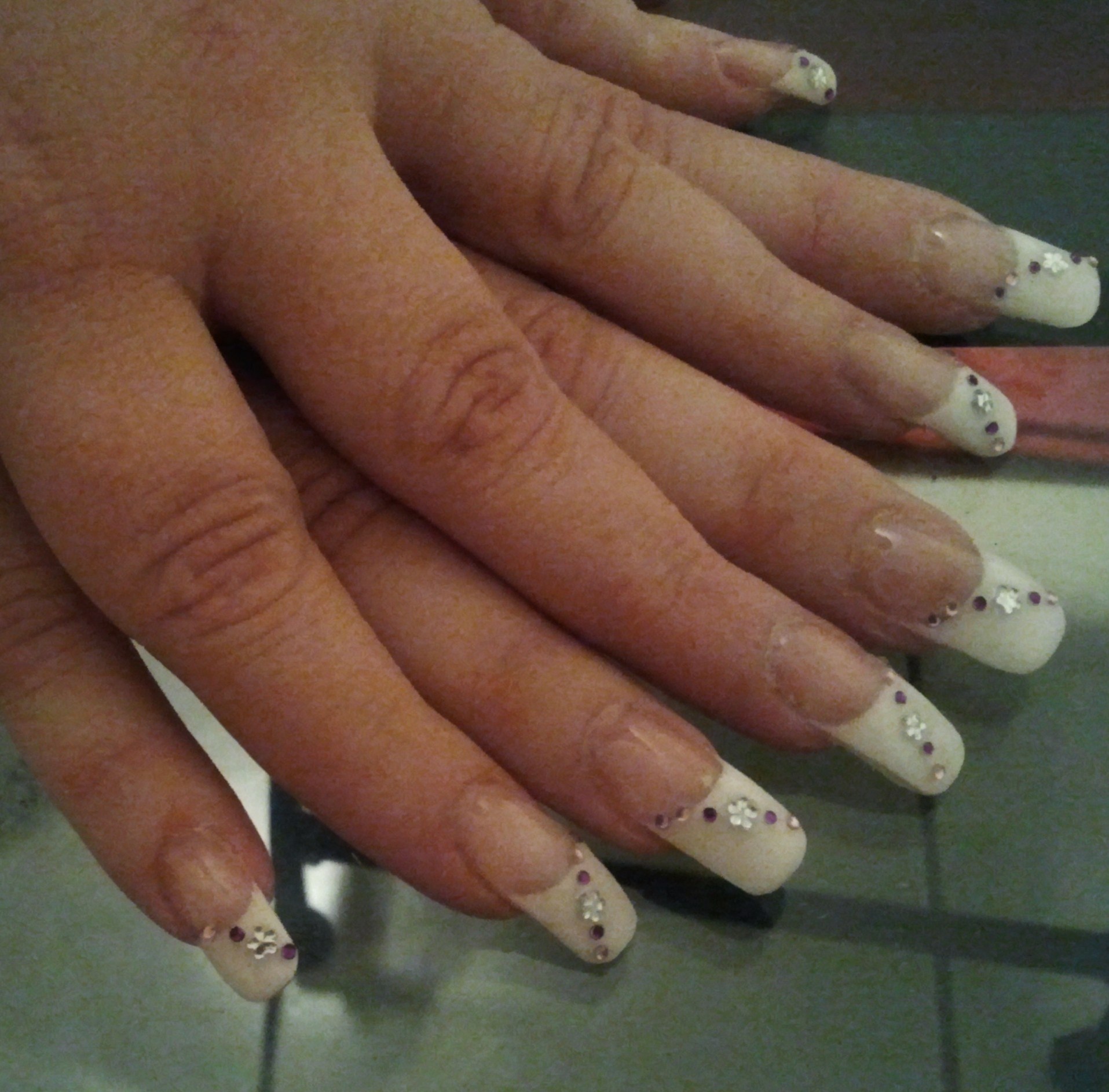 Par contre une fois que tu passe sur les ongles, c'est dans les cuticules, c'est un peu moins net, le vernis n'est pas tout le temps mis de façon a mettre en valeur l'ongle. Ta pose en gel est a peur près pareil. Sur la courte, Le gel va sur les cuticules. par contre tes fleurs sur la french blanche sont très belles. Pour la pose en longueur en gel et bien ... le sourire n'est pas assez souriant, le bombé n'est pas bien placé, la pose me semble épaisse et pas affiné. et les // par vraiment //...