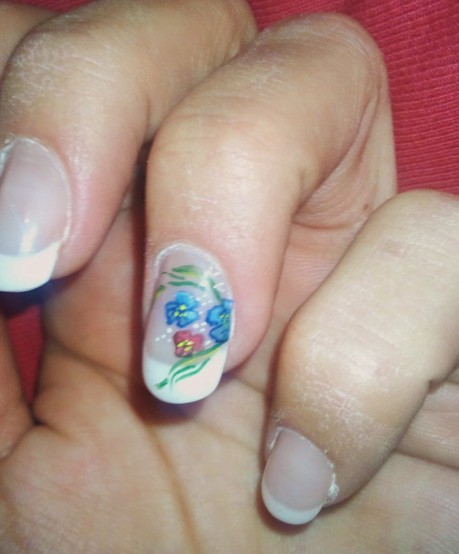Je vous mets mes dernières poses sur la première une pose avant après sur ma maman. Je ne suis pas hyper satisafaite du résultat car les formes sont zarbis, les // pourraient être retravaillées et la pose est bien trop épaisse mais je vous laisse juger. Les décos sont à l'aquarelle.