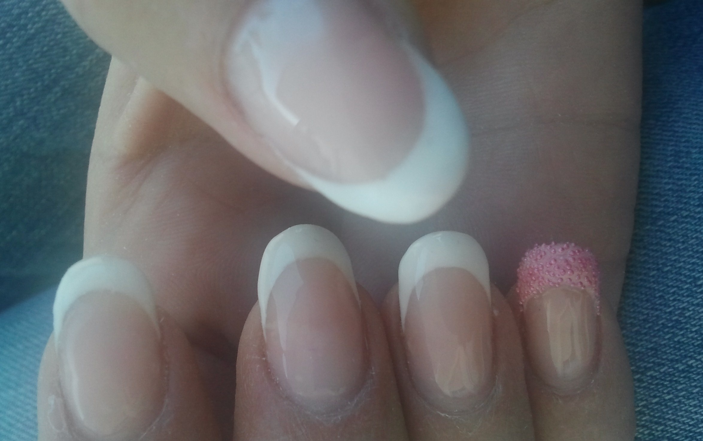 Pour la pose longue à ma décharge je travaillais sur le travail de quelqu'un d'autre car c'était un remplissage et la pose avait été catastrophique: ongle qui partaient en biais, c-curve déviant sur un des côtés et bords du rallongement irrégulier. J'ai voulu lui proposé de tout recommencé mais comme elle avait ses ongles naturels assez longs dessous elle a pas voulu donc j'ai du rattrapper au mieux. Par contre pour la french je suis d'accord qu'elle est un peu "timide".