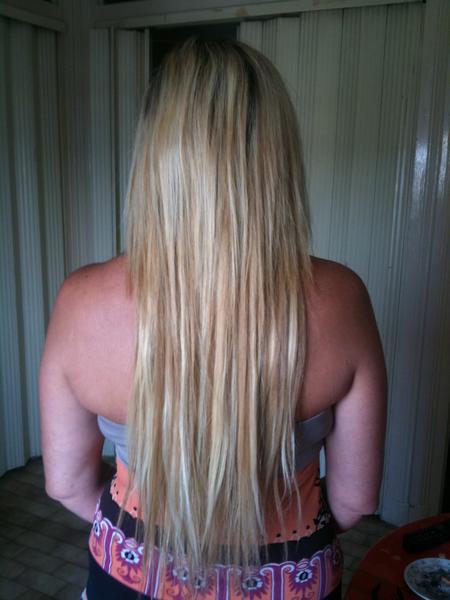 Ma cliente était très ravi, je n'ai pas trop posé sur les cotés car ma cliente s'attache beaucoup les cheveux et elle n'en voulait pas trop sur les cotés.