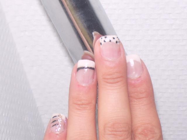pose au gel french avc petits dessins faits o pinceau gel noir et gel pailletté or