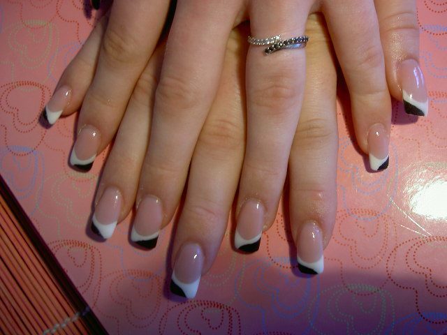 alors voila ma pose de ce matin!! mask onglerie constrction france nail finition ongle 24 french blanche et peinture acrylique noir!! biz*