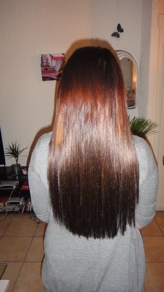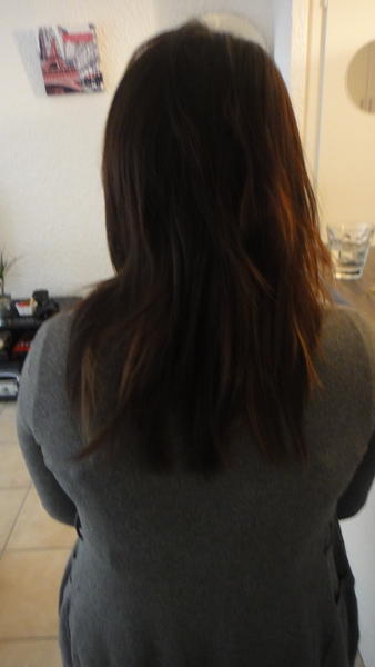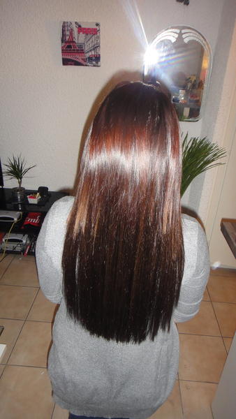 Coucou ! voici ma pose de samedi 100 mèches 1 gr couleur 2 brun foncé avec un monstrueux effet flash loool on dirai du roux alors que c est du brun foncé mais j étais plutot contente du resultat et ma cliente qui n avait jamais eu les cheveux long et en revait était ravi et son cheri aussi donc moi aussi