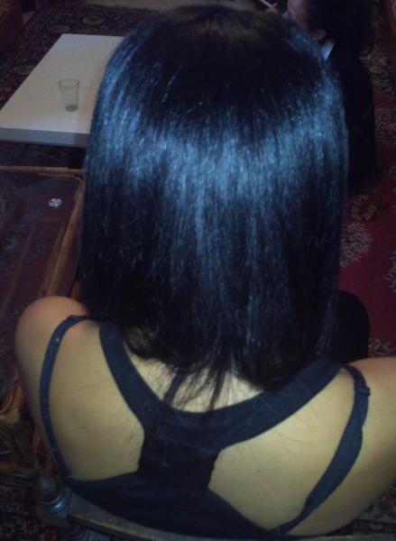 Sur la photo numéro 4, il y a un pb de coupe, mais elle ne voulait vraiment pas couper pas peur qu'une fois qu'elle retire ces extensions, qu'il y est un décalage avec sa coupe, donc voili voilou