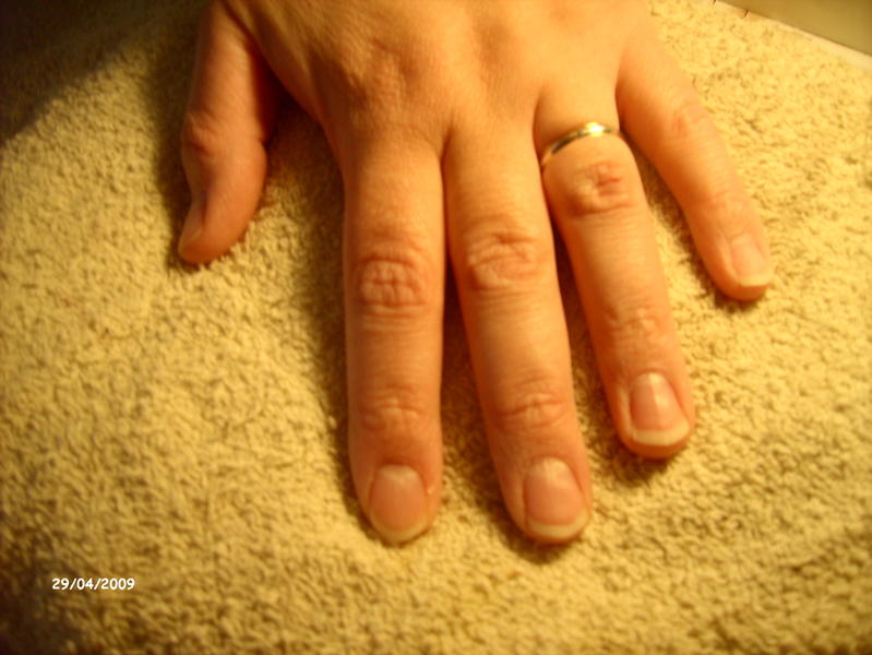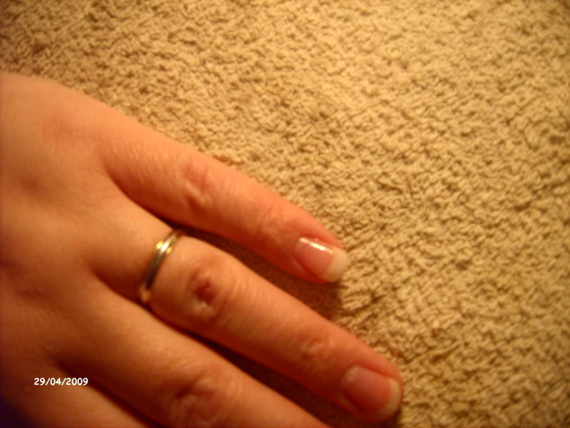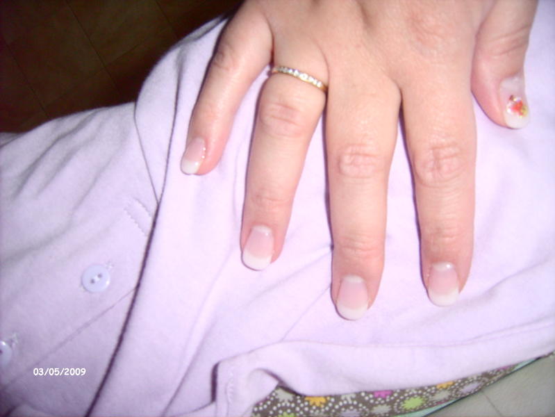 bonjour, j'ai fais une pose d'un seul ongle(pas le temps aujourd'hui de faire plus) sur moi meme, j'aimerais que vous me disiez ce que vous en pensez?! pour mémoire, je suis coiffeuse de métier et je souhaite faire une formation pose d'ongle l'année prochaine et je me fais des poses sur moi pour m'entrainer!merci d'avance