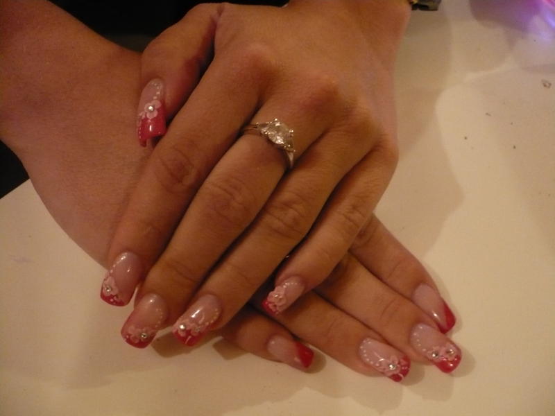 cette pose a une semaine. dommage j'ai pas pu la prendre en photo le premier jour (j'ai trouvé persone pour me prendre en photo), du coup la pose a été abimée par des coups de lime et j'ai du remettre une couche de gel de finition qui a empiété sur mes 3D. rrrr....