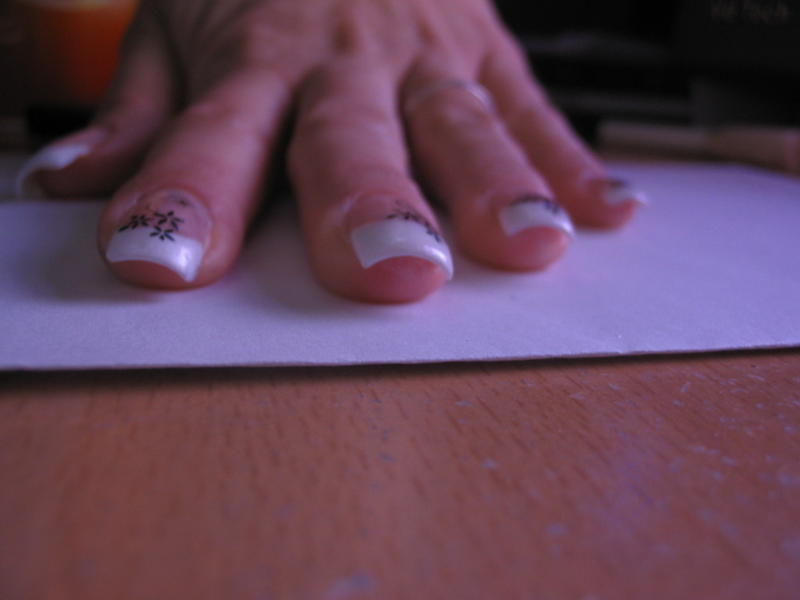 merci feline..j'ai pensé très fort a toi et a r_mimi pendant ma pose...les strass etaient trop gros lol ca cachait les fleurs..mais j'y ai pensé lol..demain je vais acheter les mini strass a estetika..je les mettrai demain..bisoussuper !!!!!!