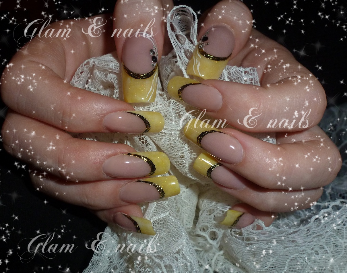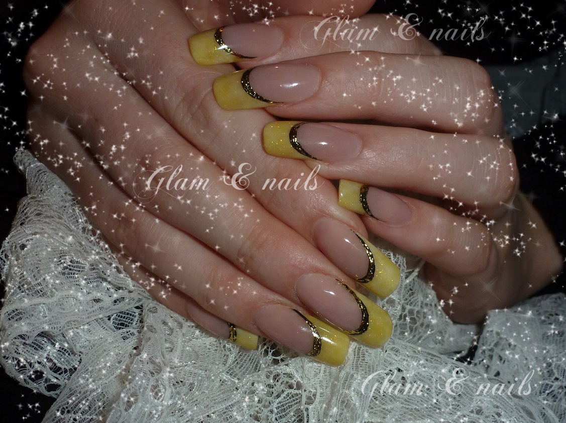 Coucou voici ma pose pour 2013 remplissage résine CND + french jaune + foil or Bisous et bonne fête de fin d'année