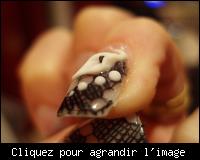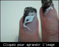 Pose en acryl MAGNETIC, dentelle incrustée, stripe it pailletté et fleur de calla (orthographe ????) en 3D ....