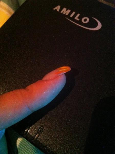 Alors voila j'ai décidé depuis peu de me lancer dans les ongles .. En attendant de trouver une formation je me suis prêter au jeu ce soir je me suis fait UN DOIGT lol ...