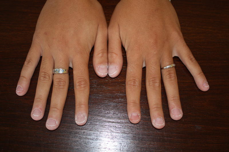 Je vous présente ma pose d'hier sur une grosse rongeuse, j'ai mis un temps fou à faire cette pose, elle avait sur chaque doigts de gros boudin et était très sensible dès que je touchais le bout de ses doigts !! elle ronge tellement ses ongles (ou ce qu'il en reste !! parce que sur la photo on ne voit pas tous les creux !!) qu'elle s'est fait opérée l'année derniere pour un panaris infecté !!