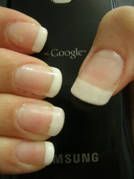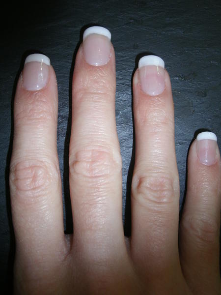 il y a des pas à pas pour le limage de la démarcation ( de Dorothisha il me semble), c'est une question de tenue de la lime. Pour le reste je trouve quand meme pas ça si catastrophique pour une prochaine fois il faut juste que tu te familiarises avec les techniques et les produits. Parcours le forum dans tous les sens c'est une mine d'informations géniales. Courage et entrainement :)