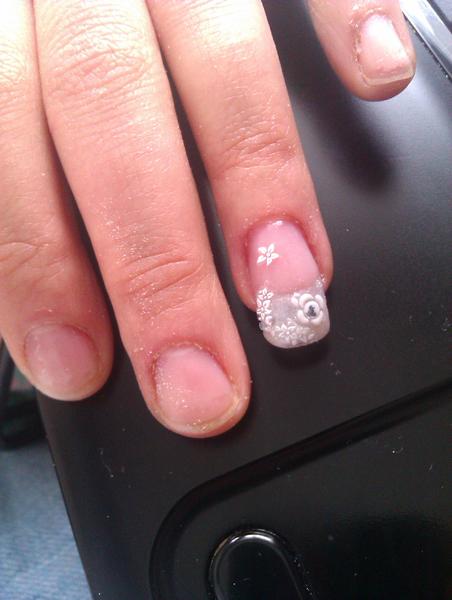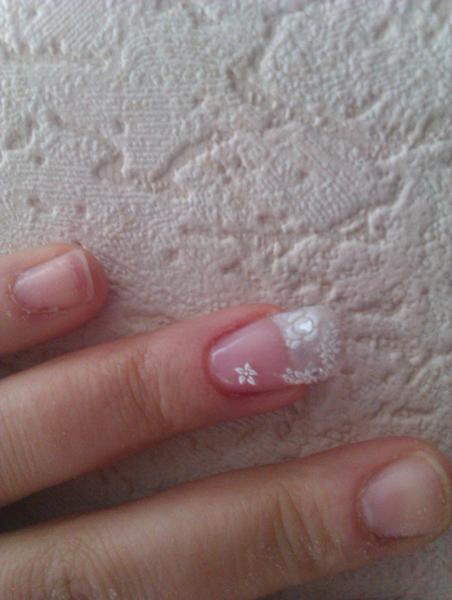 bravo pour une première !!! C'est joli et propre :) ta french est un peu large je trouve sur l'annulaire et le pouce est un peu en canard, il mériterait un peu de limage encore sur les cotes :) mais ce n'est que mon avis de débutante ;) bonne continuation