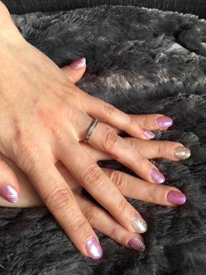 hello les filles voilà ma première pose pas facile pour une première de travailler sur soit même demain je fais celle de ma maman et ma sœur j’espère les réussir!!! ma seule remarque le gel pailleté difficile a travailler bonne soiree les filles