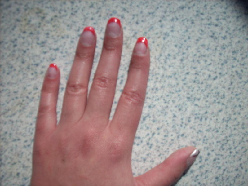 Re : ma premiere pose au chablon avec french orangée oui car vu de profil le pouce me parait bien plat!