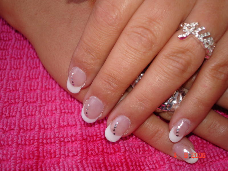 voila je me suis lancée au chablon voici ma premiere pose pas facile mais je m'en suis pas mal tiré surtout que c'etait des ongles tres courts rongés