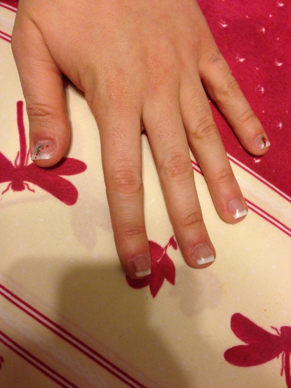 Voilà je me suis lancer cest ma toute première pose beaucoup de défaut :/ désole j'ai pas de photo avant mais mes ongle sont trés ronge