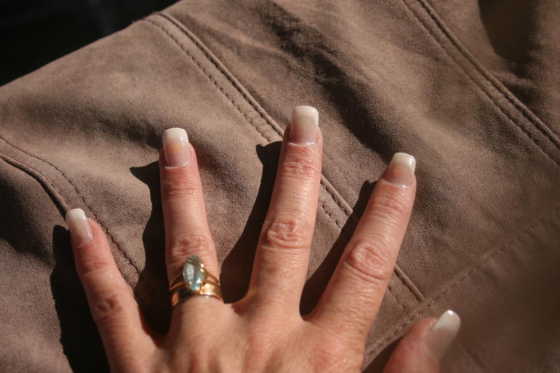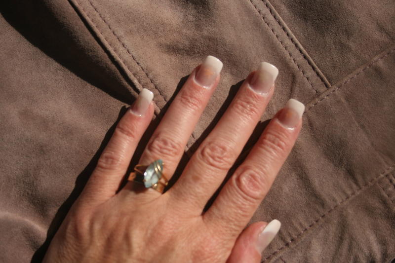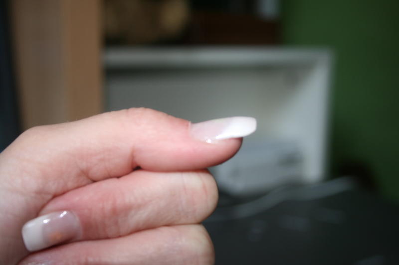 Voilà me première pose pour le forum, j ai galèré j ai mis un temps fou et recomence plusieurs fois, ma lime était neuve et je me suis bléssée sur plusieurs doigts mais je n ai pas perdu espoir........ je persévére je suis décu sur la déco elle se voit à peine,si j avais su je l aurais mise à la finition et pas à la construction,
