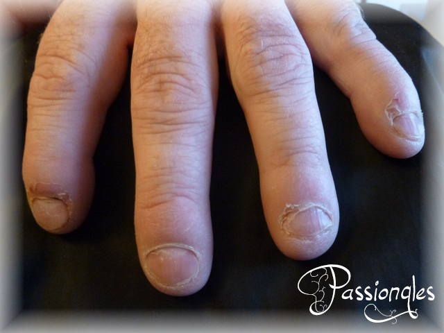 Et voila, ça y est je l'ai fait ... un rallongement résine sur un homme qui veut arrêter de se ronger les ongles après plus de 40 ans de cette manie. Ca lui change beaucoup les mains et il a adoré le résultat (et moi aussi). Cette pose lui as été offerte pour la St Valentin par sa chérie ... beau cadeau