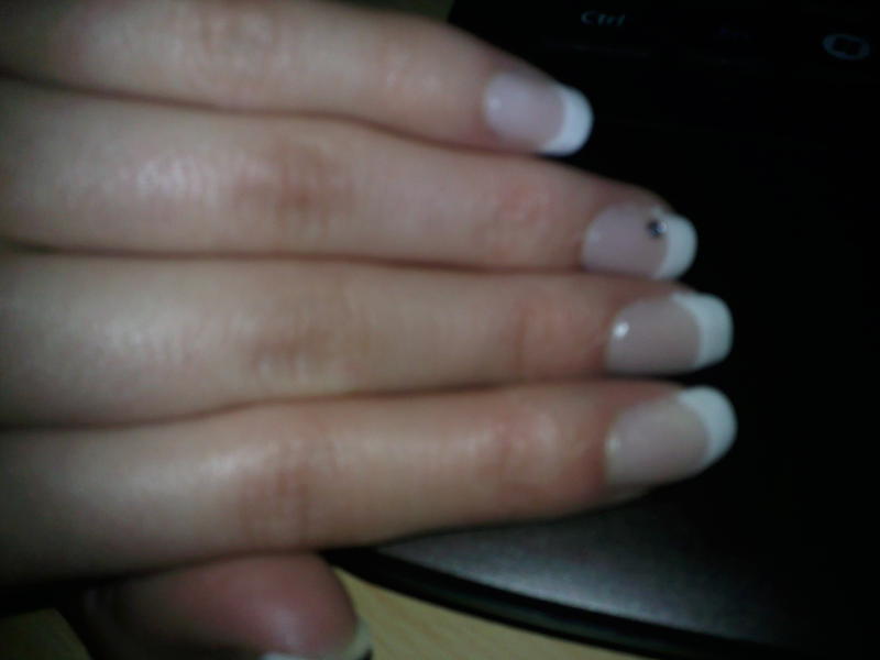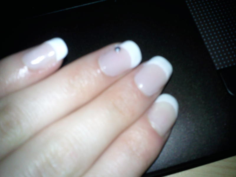 Voila ma première pose bon c'est une french toute simple, juste un petit strass pour décorer =P ça se voit pas trop la mais ce n'est pas très lisse, meme en passant le bloc blanc à fond comme je n'ai pas de ponceuse electrique ... Qu'en pensez vous ?