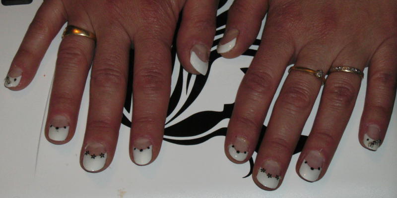 voila j'ai reussit. maintenant j'espere que vous aller voir correctement. n'hesiter pas a me dire ce qui va pas que je puisse progresser. sur cette pose, se sont des capsules french faite sur ma belle soeur. il y a un doigt ou il est plus petit car elle se ronge le doigt.