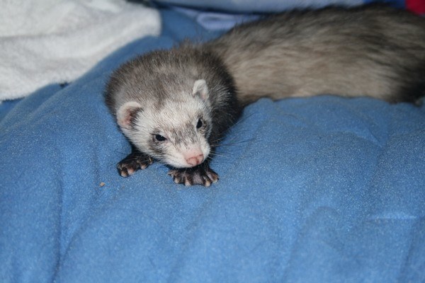 Petite parenthèse importante un furet n'est PAS un rongeur mais mange des croquettes de très bonne qualité et surtout pas de super-marché (pour chats de préférence) ET du carné (poulet, lapin,dinde :crues et pas de viande rouge) ET des proies (mortes ou vivantes