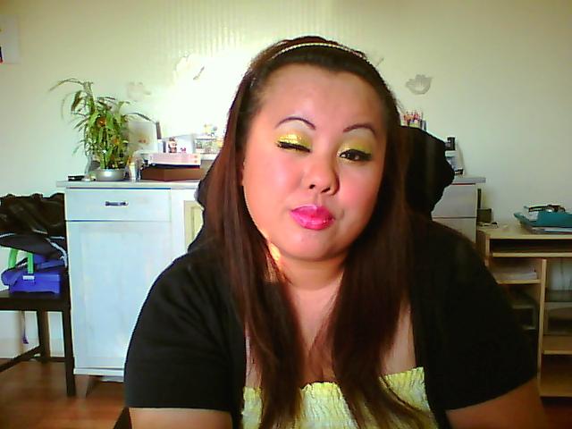 Me revoilà avec un make up tout en paillette^^ j'espère que ça vous plairas, j'ai utilisé le glitter yellow par dessus le fap jaune = )