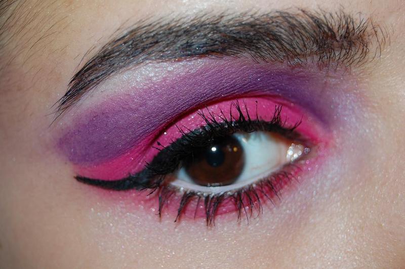 voila j'ai utlisé mon pigments MAC "magenta madness" c'est un pigment hyper rose de chez rose!! voila ce que ca donne, ah oui me suis inspiré de , voila j'ai fait avec ce que j'avais ( c'est a dire pas grand chose lol)