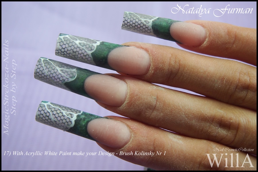 17) A l'aide d' un pinceau Kolinsky Nr 1.. faite votre design avec de la peinture Acrylique blanche.