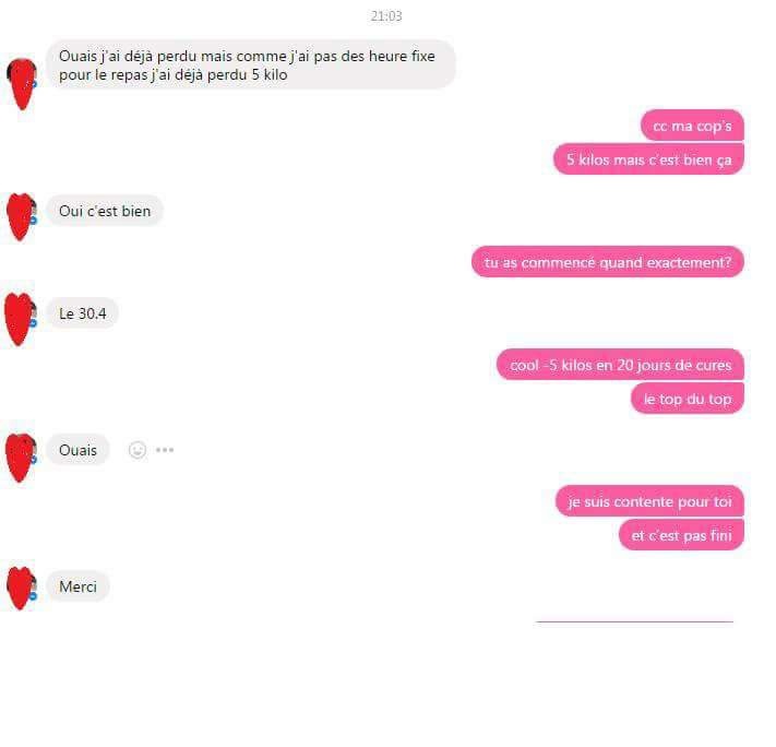 Sa revien pareil que foodspring j'ai perdu 1 kg de mardi a vendredi en mangeant normalement le midi...je souhaite perdre 5 kg voir plus c'est mes 5 dernier kg de grossesse qui me reste