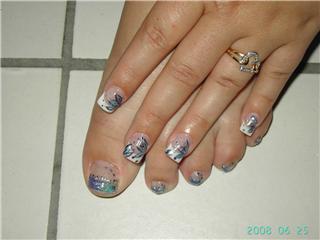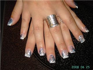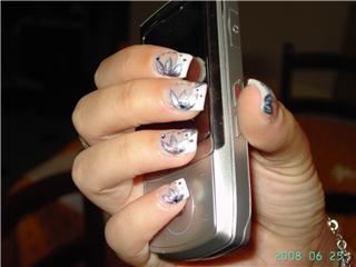 Sinon, niveau decos sur les mains, fleurs bleu et chocolat et french blanche.
