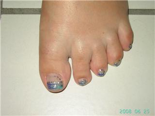Et sur les pieds, decos en paillettes bleu et argent et dessins chocolat.