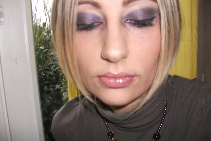 Natii tu devrais rajouter une couleur claire ou couleur peau pour taider a estomper le contour sinon jaime beaucoup le violet et le noir en maquillage![]()
