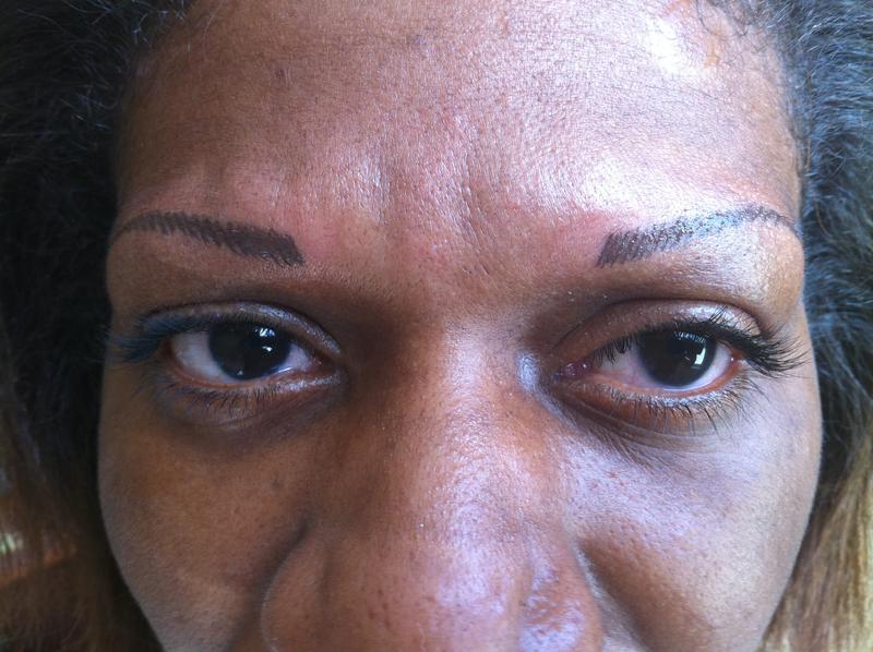 Je ne trouve du tout bien fait ton tatouage car tu laissais un trop gd espace entre les sourcils tu dois obligatoirement prende l angle interne des yeux pour démarrer le tatouage