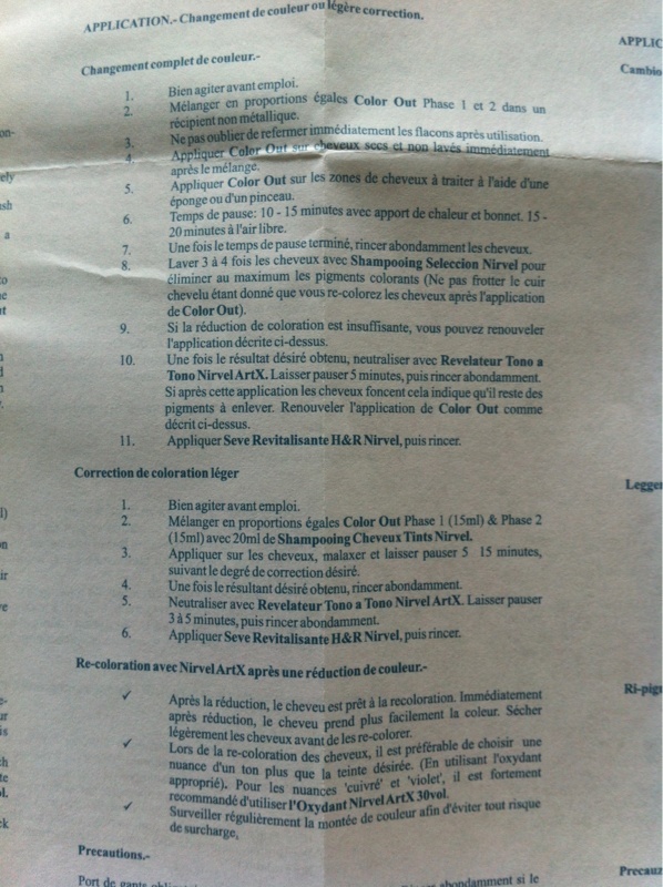 coucou je débarque!! en ce moment c'est la galère, il y a grève des cantines et garderies alors pas top l'organisation. bon color out et color off sont des bases à pouvoir réducteur. elle dissolvent les pigments artificiels apportés par la couleur, un fois que ces pigments sont visuellement assez dissouts, on rince et applique un shampooing acide spécifique contenant un oxydant (peroxyde d'hydrogène) afin de fixer la réduction. je sais pas si je suis très claire, c'est le principe de réaction d'oxydo-réduction, en chimie, comme pour les lissage permanent par exemple, ou les perms... l'oxydation est nécessaire. alors je sais pas si color out a un shampooing spécifique, mais color off oui, et il est vendu dans le kit.
