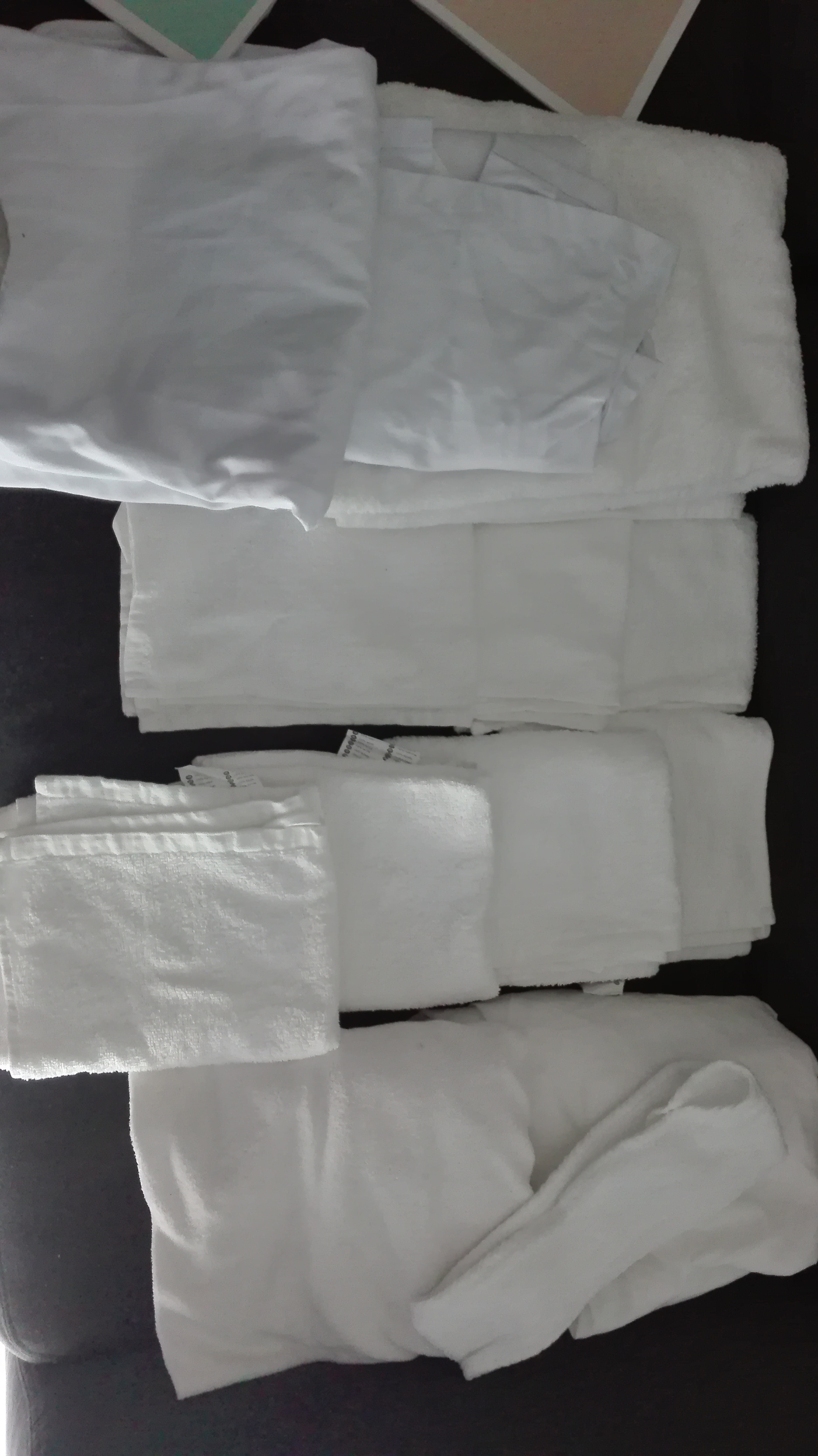 Je revends également le linge avec une tenue professionnelle portée une fois taille 38. Un paréo éponge, un bandeau éponge, 3 serviettes pour les mains, 4 pour le visage, un drap housse qui servira pour votre lit d'examen, et une serviette drap de bain 100*150 cm et une paire de mule éponge ouverte. Je me suis servie du linge y compris la tenue que le jour de l'examen.