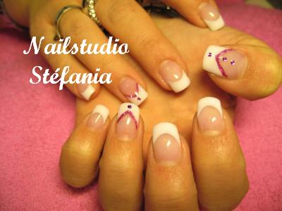 1) french blanche, annulaire et pouce gel Passionata de chez rofessionails et mes petites libellules au stripping et paillettes argentées