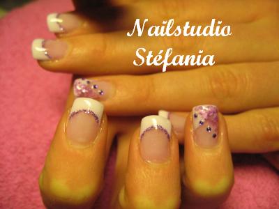 3) Encore du blanc et Paillette mauve pour les sourire et corail sur les annulaires et strass