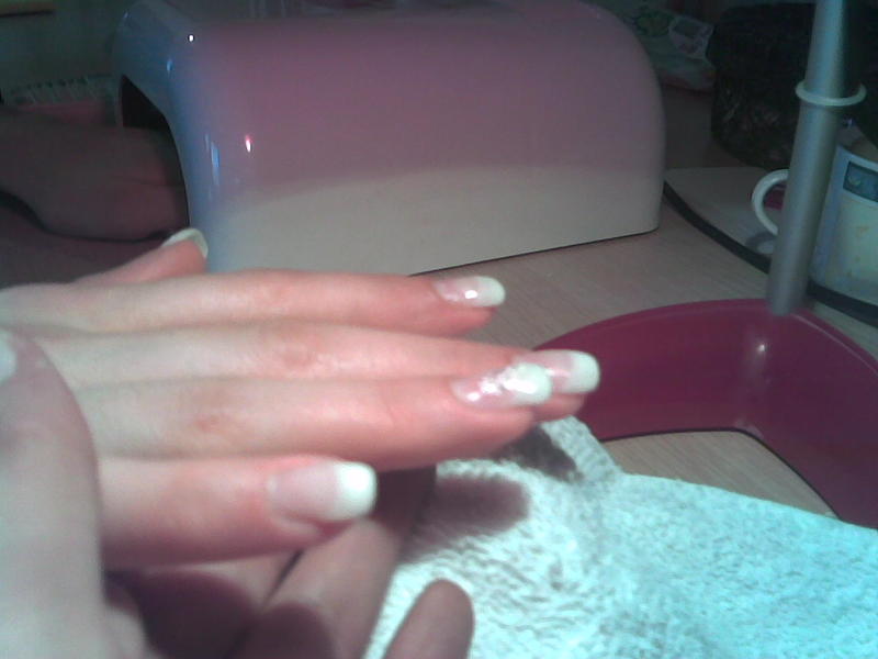 bonjour!! voilà cela fais pas longtemps que je me suis mise au faux ongles!! donc voilà je vous met ma première pose!! la personne en question a des ongles trés abîmer!