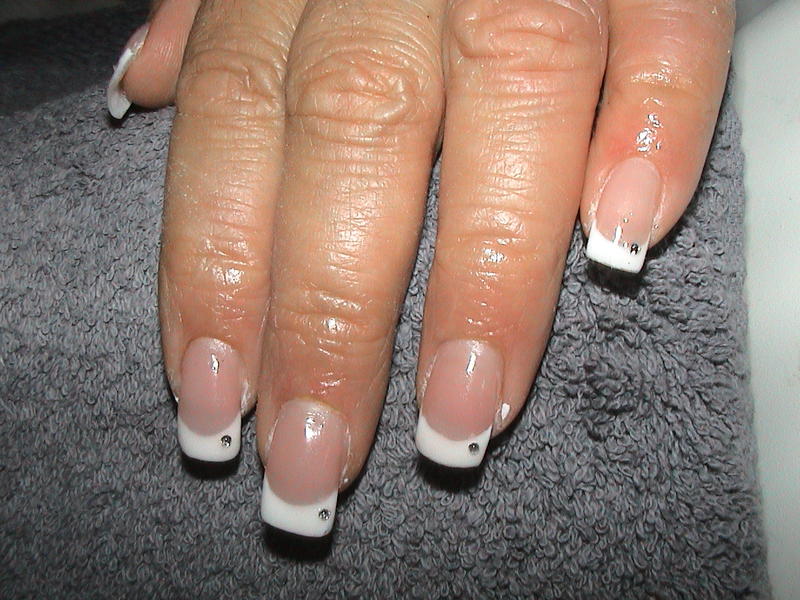habituellement elle met des capsules french, n'avait jamais appris à faire une french, donc elle a fait sa 1ère pose elle même aujourd'hui
