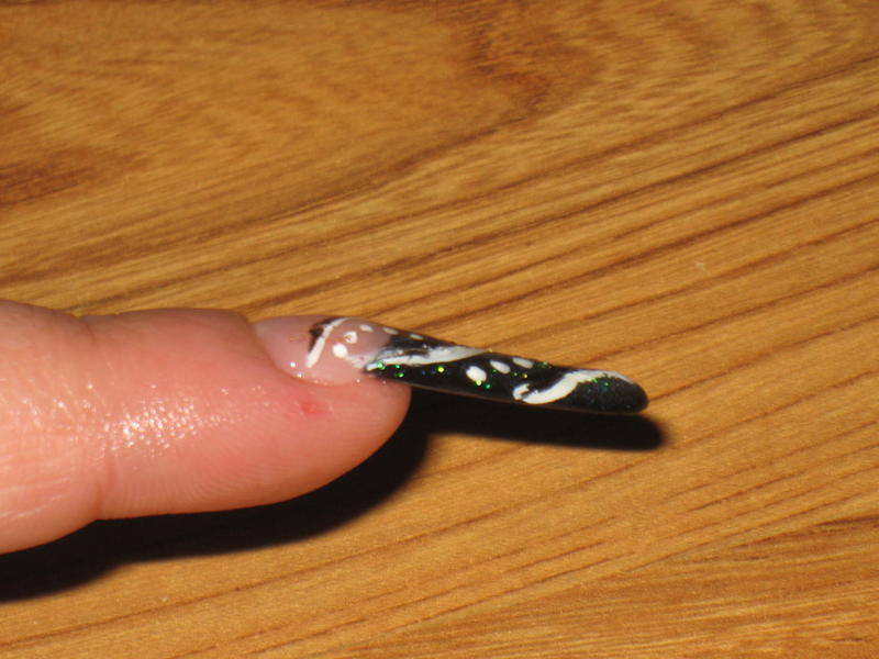 Vous pouvez voir sur les photos que les traits sont encore trop épais et en plus je l'ai fait par dessus les paillettes!lol