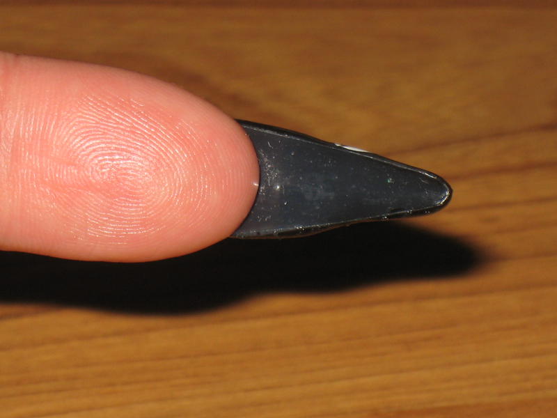 Sur la photo vu du dessous, vous verrez que sur le coté droit du stylet il y a comme un creux, je pense que je n'ai pas mis assez de gel sur le coté!!