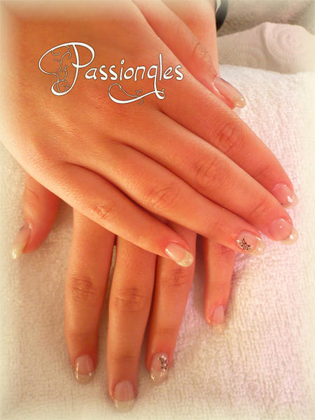 * Construction résine et habillage french nacré gel avec pour la déco stickers et strass de chez Claire's.