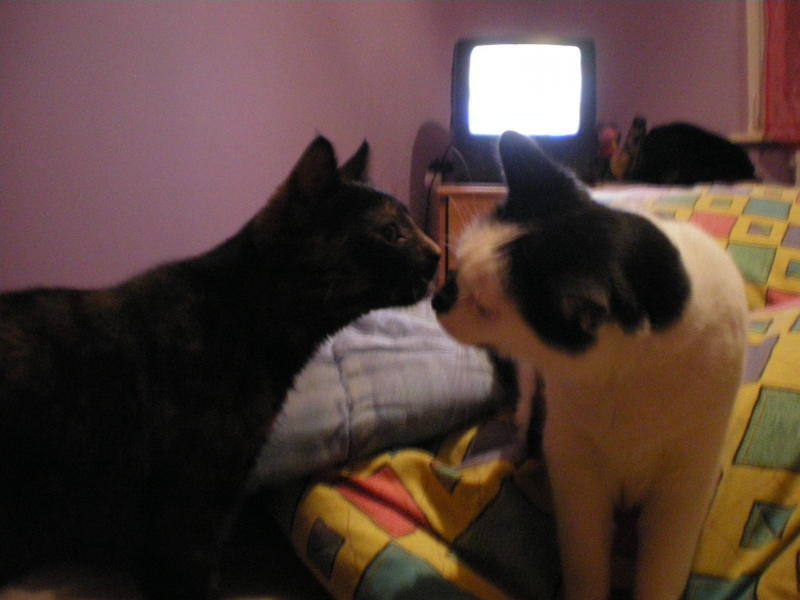 voilà je viens de voir qu'il y avait une rubrique "animaux" donc je vous présente mes amours !! La grande noir et blanc s'appelle Bébé elle va avoir 6 ans et la petite (une écaille de tortue) s'appelle Kiki, elle a 6 mois.