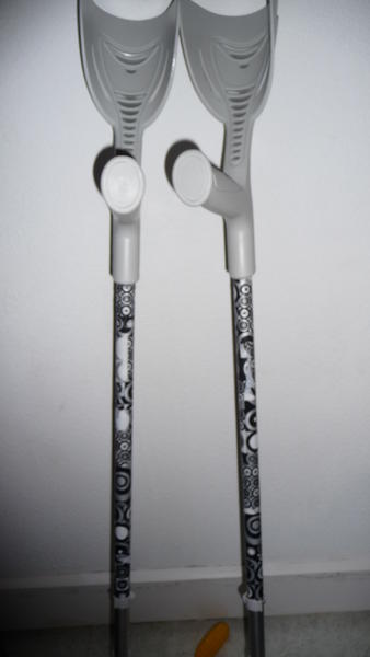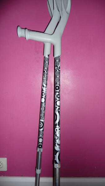 voilou vu que suis platré j'ai voulu custumisées mes bequilles trop communes a mon gout!!!lool!!merci decopatch!!