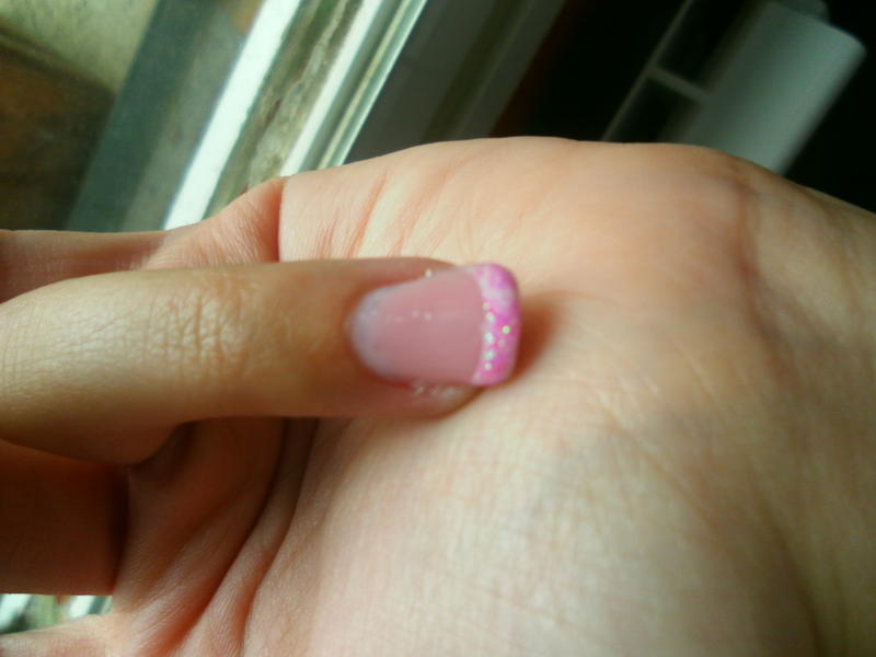Je te conseille de laisser a coté tes décos pour l'instant. Concentre toi sur la construction correcte de tes ongles. Je comprends que c'est plus fun de faire les paillettes & cie, mais ça souligne tous les défauts.