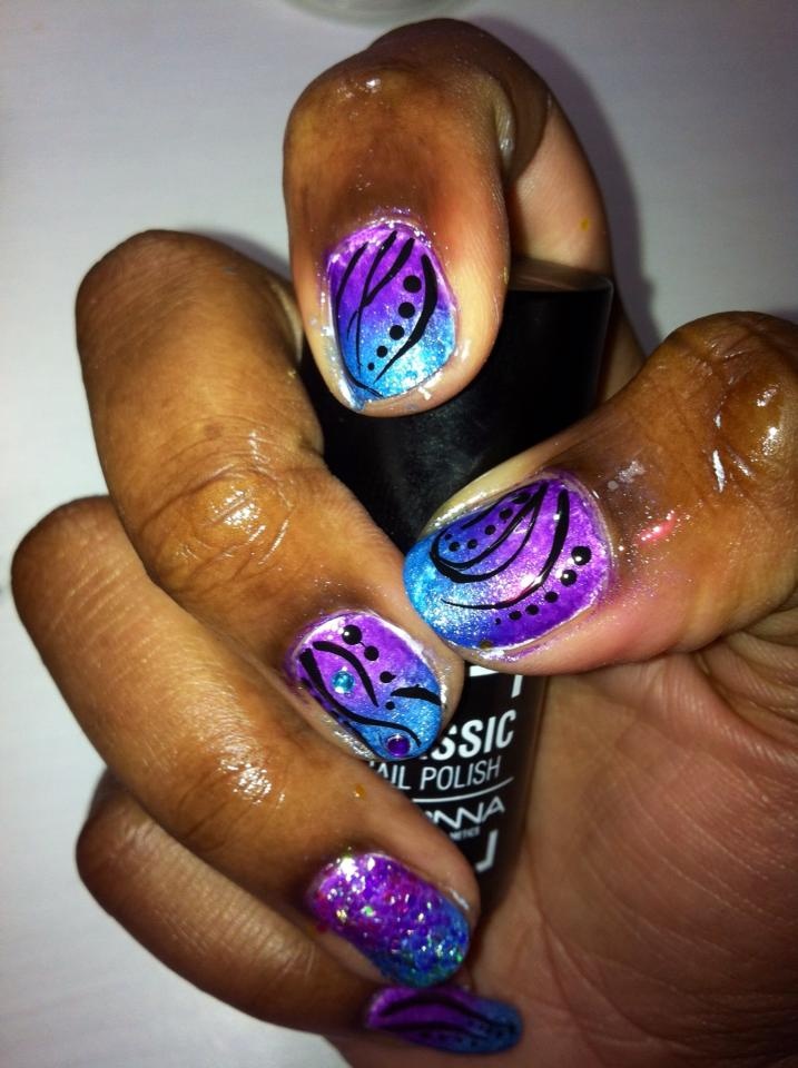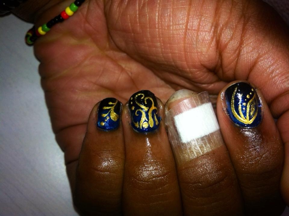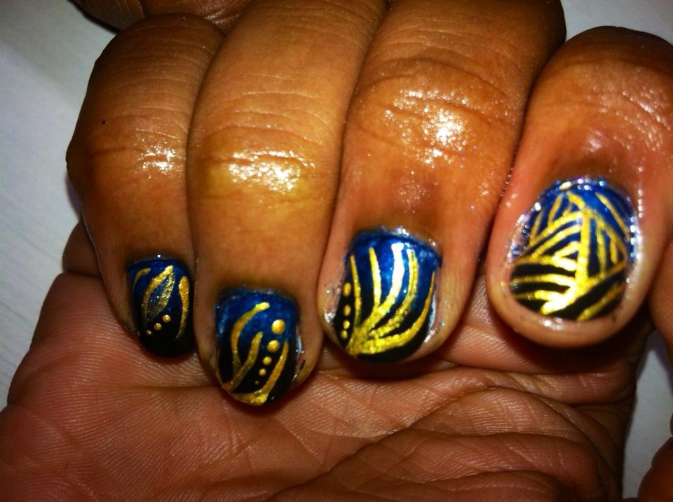 Je me suis inspirée de Tartofraise pour ces décos et désolée pour les taches de vernis sur les cuticules j'ai toujours un peu de mal à les nettoyer! J'utilise du vernis de l'acrylique et de l'aquarelle. Si vous avez des conseils, des critiques constructives, merci de l'en faire part!