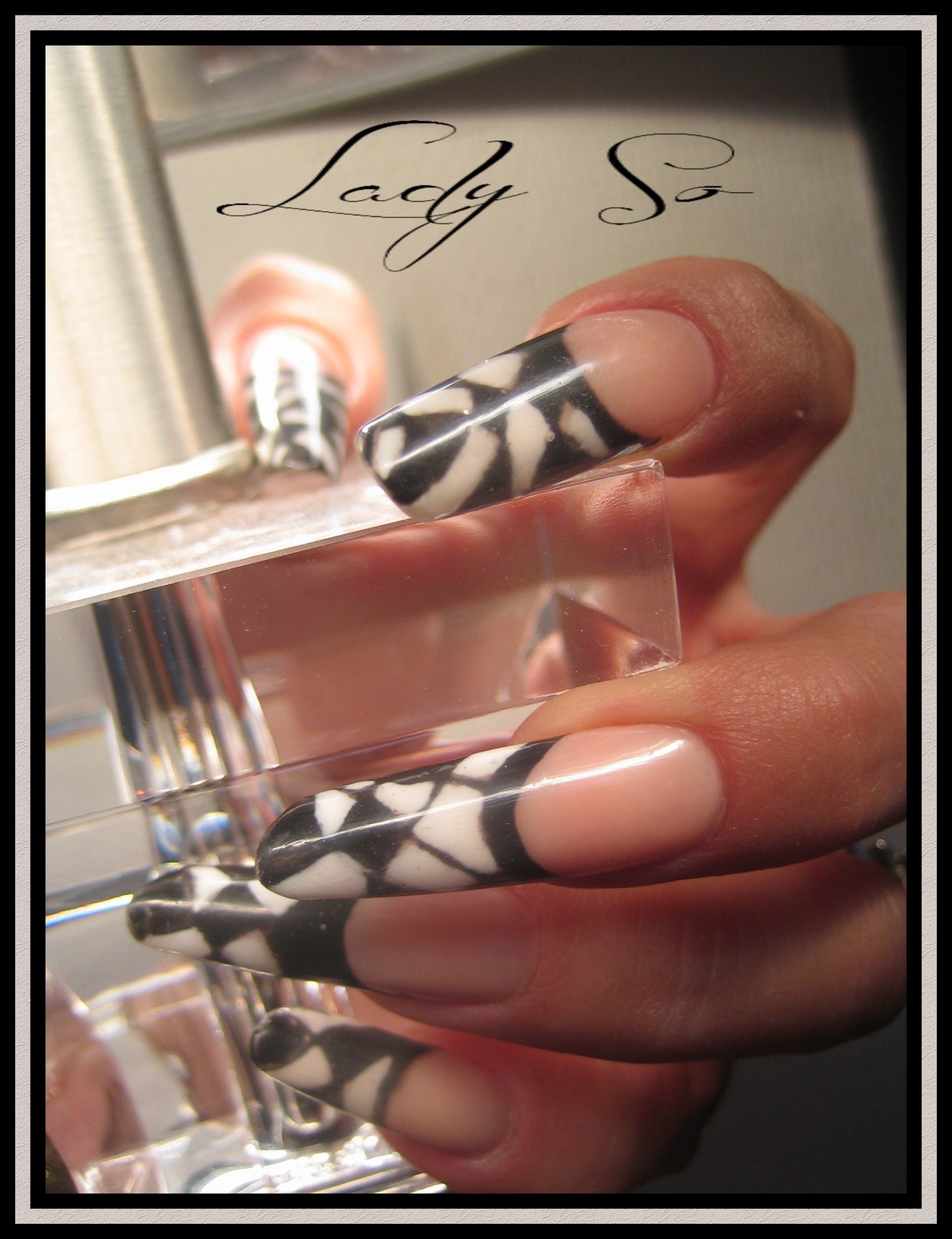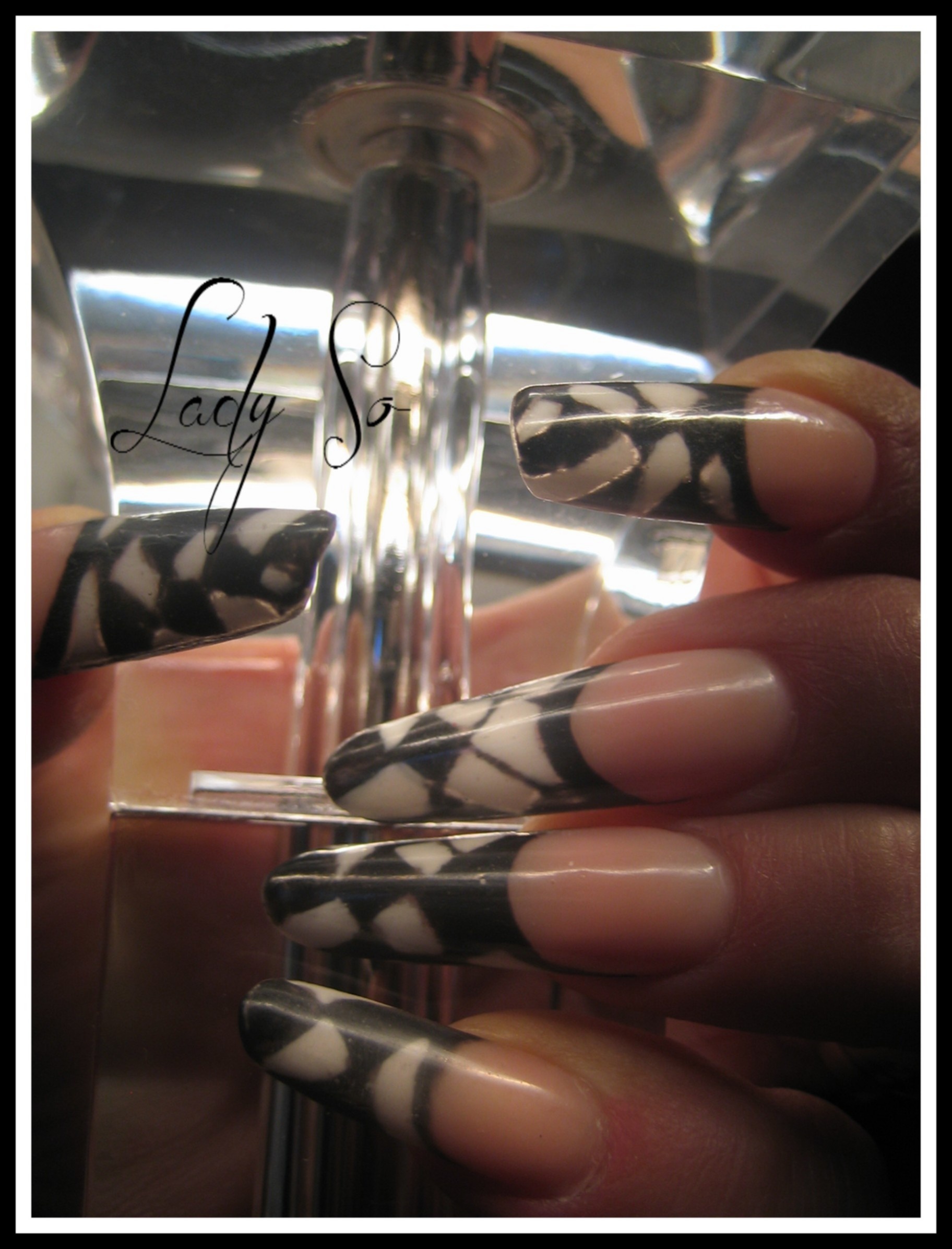 Coucou les miss, voilà une pose que j'ai fait à mes débuts, quel chemin et leçons depuis!!! on remarque la plaque trop courte, je ne savais pas ce que c'était au début, et encore moins l importance du cover, du bombé,!!! les traits noirs irréguliers, et oui j utilisait un gel discount qui bavait avant de savoir que la peinture acrilic était bien mieux, c était encore le temps ou je ne savais pas ce que pincher voulait dire!....Mais j ai eu la chance de croiser sur le fofo des passionnées qui m ont beaucoup appris et qui ont étaient tréééés patientes!!!!!! Comme je l ai déjà dit , je suis un bébé du fofo...Un bémol toute fois sur certaines qui auraient pu me décourager, me déprimer même, mais c'était sans compter sur ma détermination! Sans avoir oublié, je n en dirais pas plus......Je suis reconnaissante de ce que le forum m'a apporté. Jugez en par vous même!;)